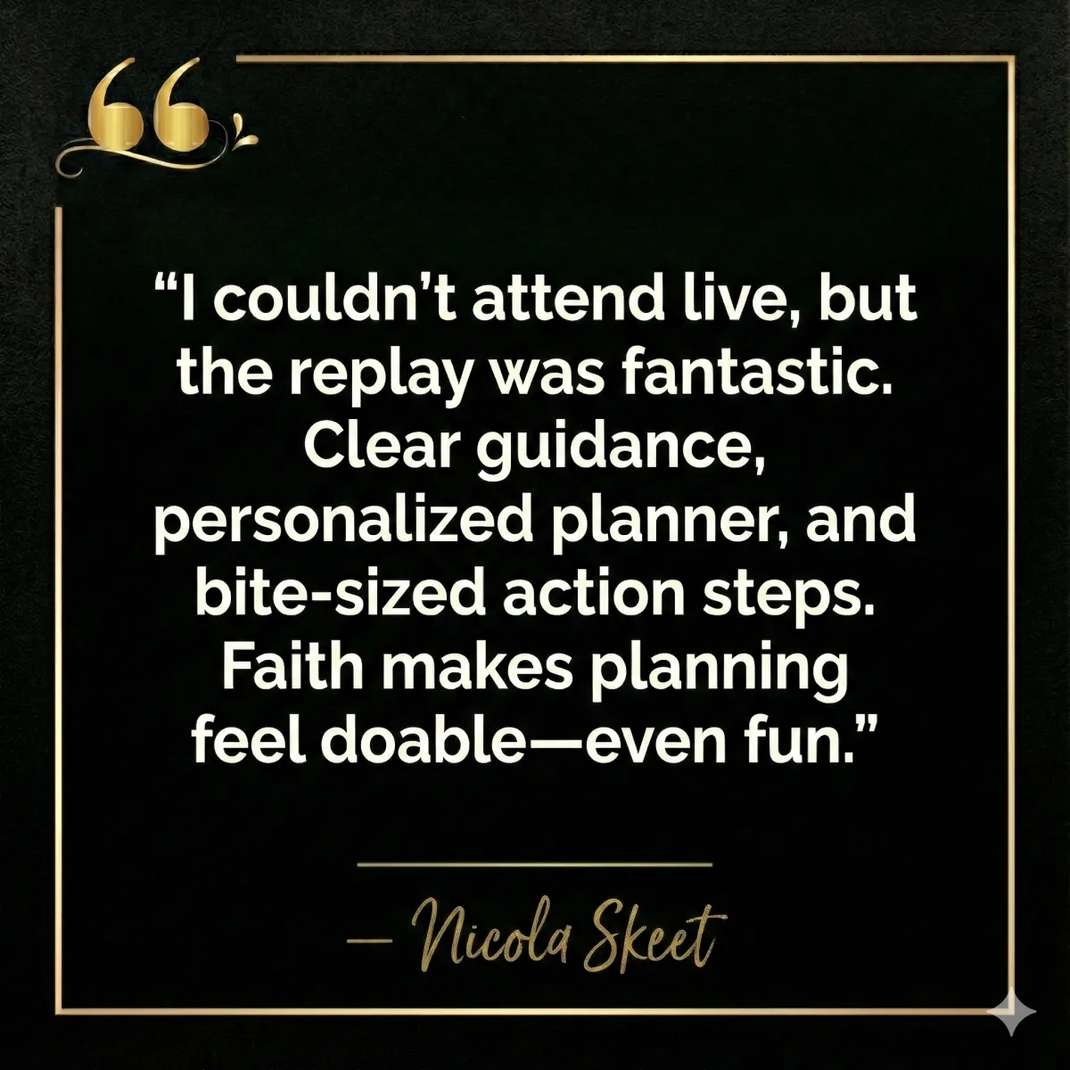 The live workshop is 6 hours, but you can pause the replay and work at your own pace. Most people complete their plan in 4-6 hours total.